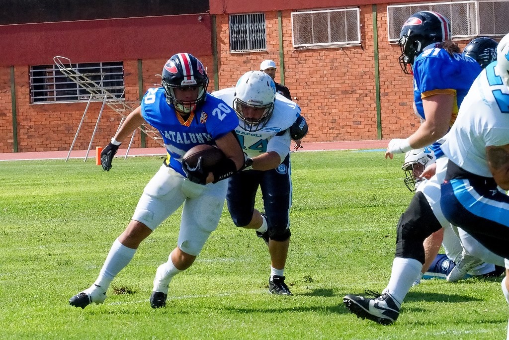Sobre el terreny de joc, el conjunt dirigit per Angelo Vettese va imposar el seu ritme des del primer quart, anotant tres «touchdowns» amb una sortida fulgurant. Edu Molina, amb una potent cursa, va obrir el marcador (6-0), i la defensa catalana va ampliar l’avantatge amb dues intercepcions retornades fins a la zona d’anotació per Marc Guerrero i Daniel Atienza (18-0).