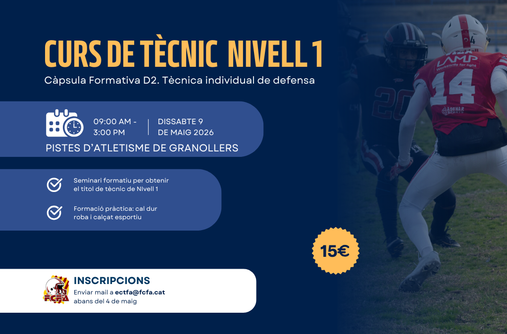 La Federació Catalana de Futbol Americà (FCFA) continua amb el nou programa de formació de tècnics de Futbol Americà, responent a la necessitat que els entrenadors dels diferents equips disposin de formació per tal de poder tramitar la llicència federativa de tècnic.