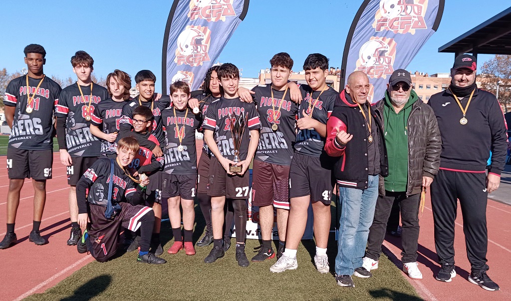 L’Estadi Municipal Pilar Pons, a Cornellà de Llobregat, ha estat l’escenari de la cloenda de les Copes Catalanes Cadet (Sub-17) i Aleví (Sub-13) de Futbol Flag, on els Pioners de L’Hospitalet han brillat amb llum pròpia proclamant-se campions de les dues categories. Amb un domini incontestable, els de L’Hospitalet han signat el doblet mantenint-se invictes i sense donar cap opció als seus rivals.