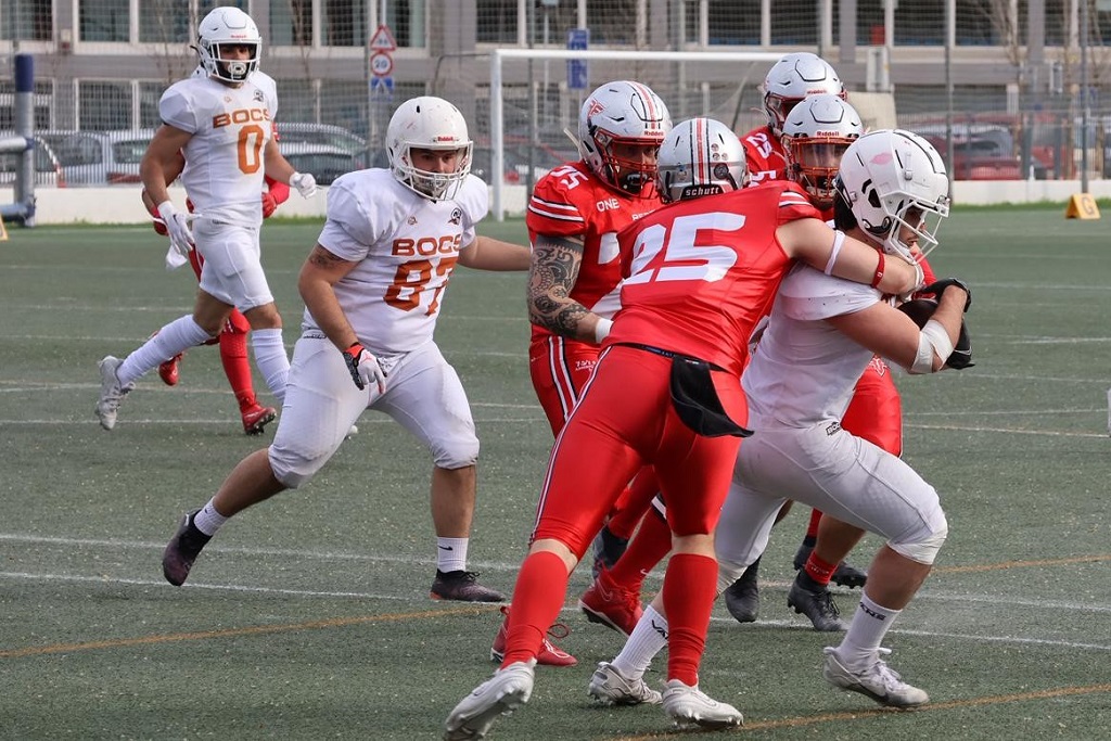 Finalment, els Argentona Bocs també van fer un pas de gegant cap als play-offs en vèncer els actuals campions, els Rebels, que encadenaven tres victòries consecutives. Els del Baix Camp es van avançar amb un «field goal» de Marius Daniel Filip (0-3), però abans del descans els maresmencs van ser capaços de capgirar el marcador fins a establir el definitiu 20-3. Albert González, Eloi González i Marc Mesa van ser els autors dels tres «touchdowns» dels Bocs, mentre que Ricard Homs també va sumar una conversió de 2 punts.